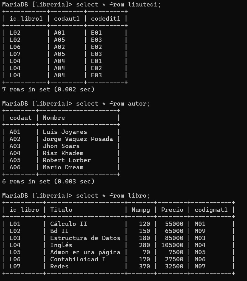 Utilizando la Base de Datos LIBRERIA y guardar la evidencia de los comandos utilizados.